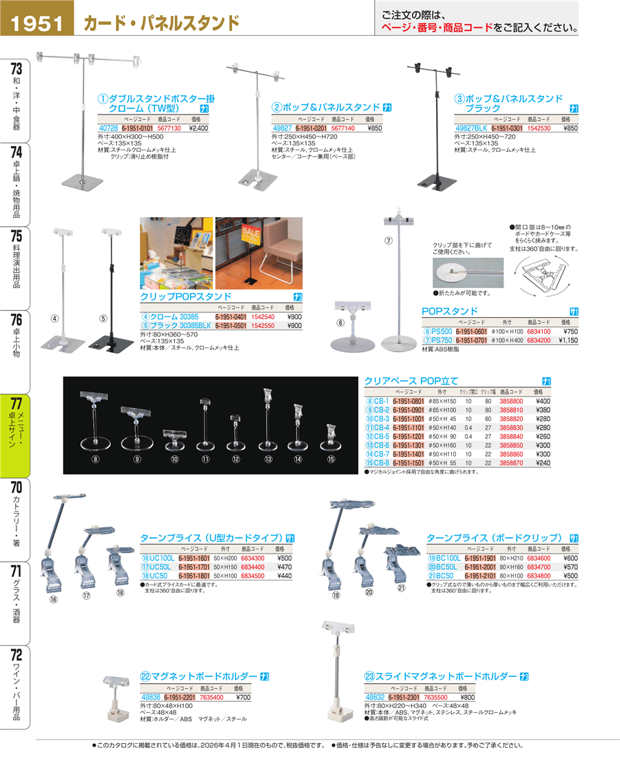 | e26-5677140 | ポップ&パネルスタンド 49827 クローム | 上代 850円(税抜) 見積 | ||