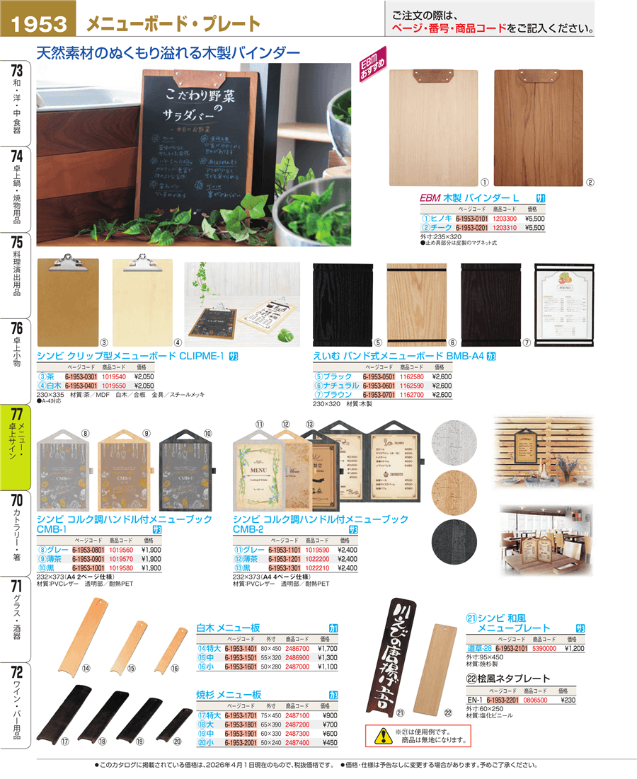 | e26-1019550 | シンビ クリップ型メニューボード CLIPME-1 白木 | 上代 2,050円(税抜) 見積 | ||