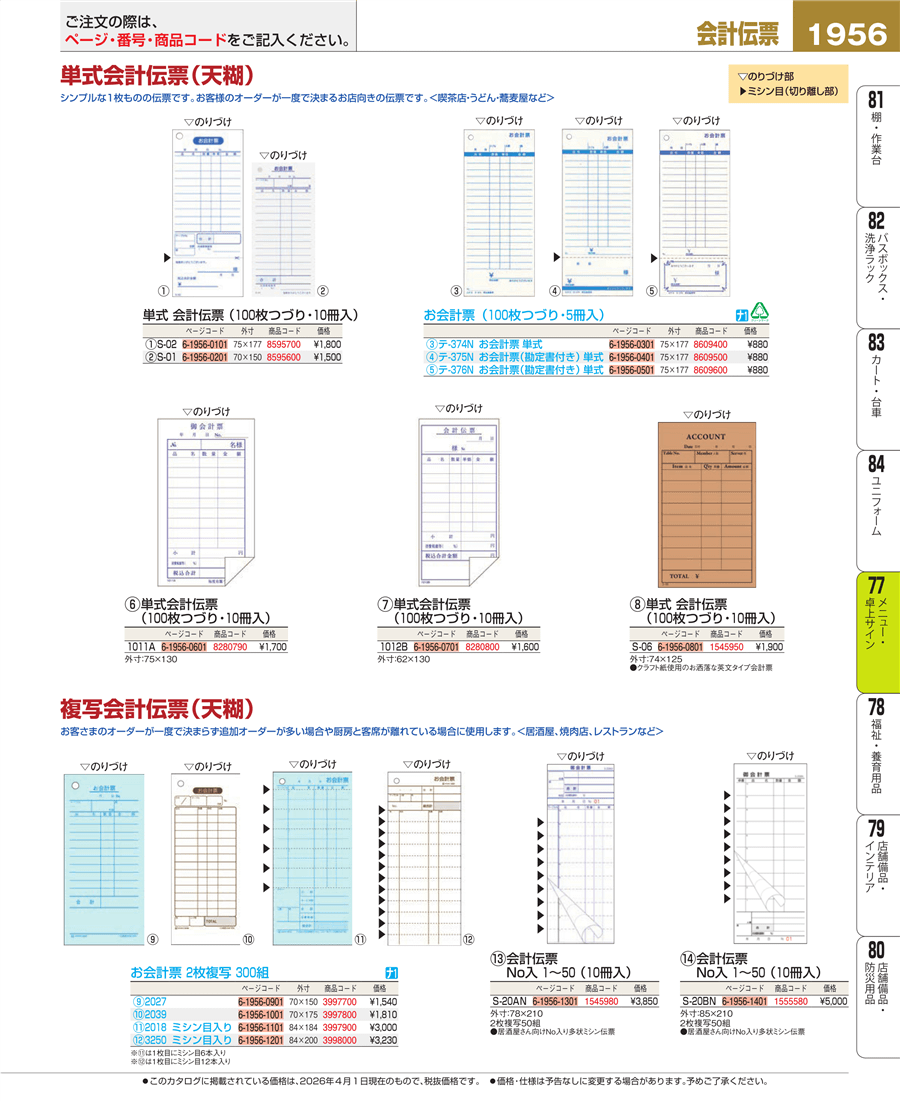| e26-3997700 | お会計票 2枚複写 2027(300組) | 上代 1,540円(税抜) 見積 | ||