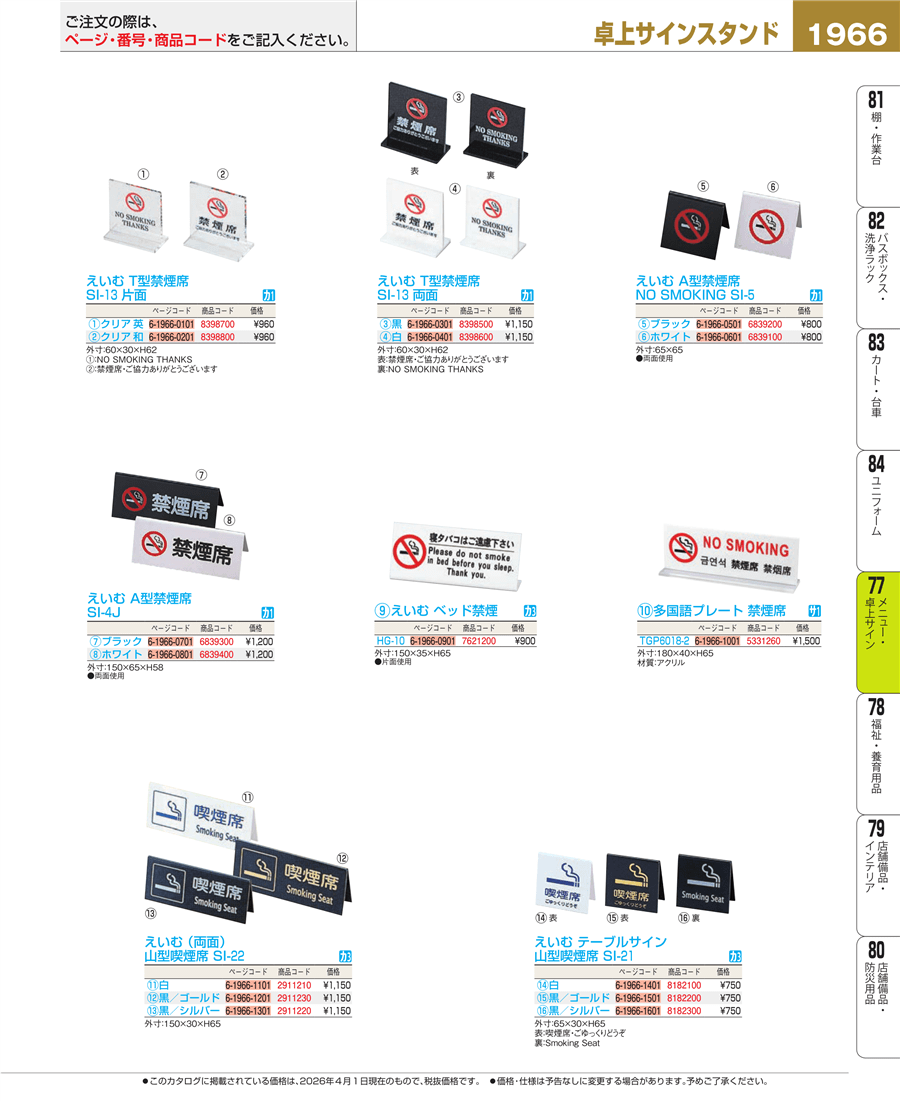e26-8398600えいむ T型禁煙席 両面 白 SI-13上代 1,150円(税抜)