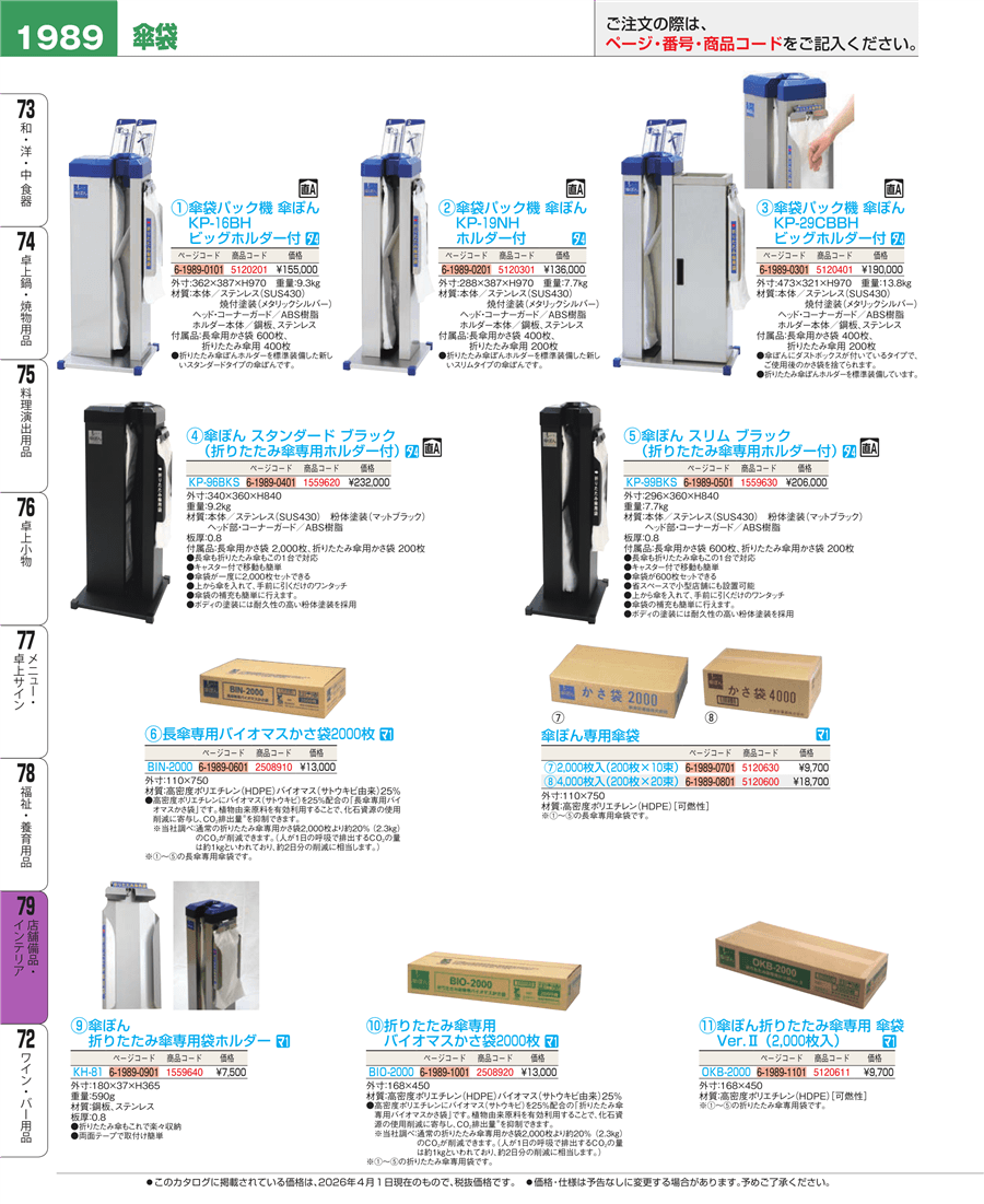 | e26-5120201 | 傘袋パック機 傘ぽん KP-16BH ビッグホルダー付き | 上代 155,000円(税抜) 見積 | ||