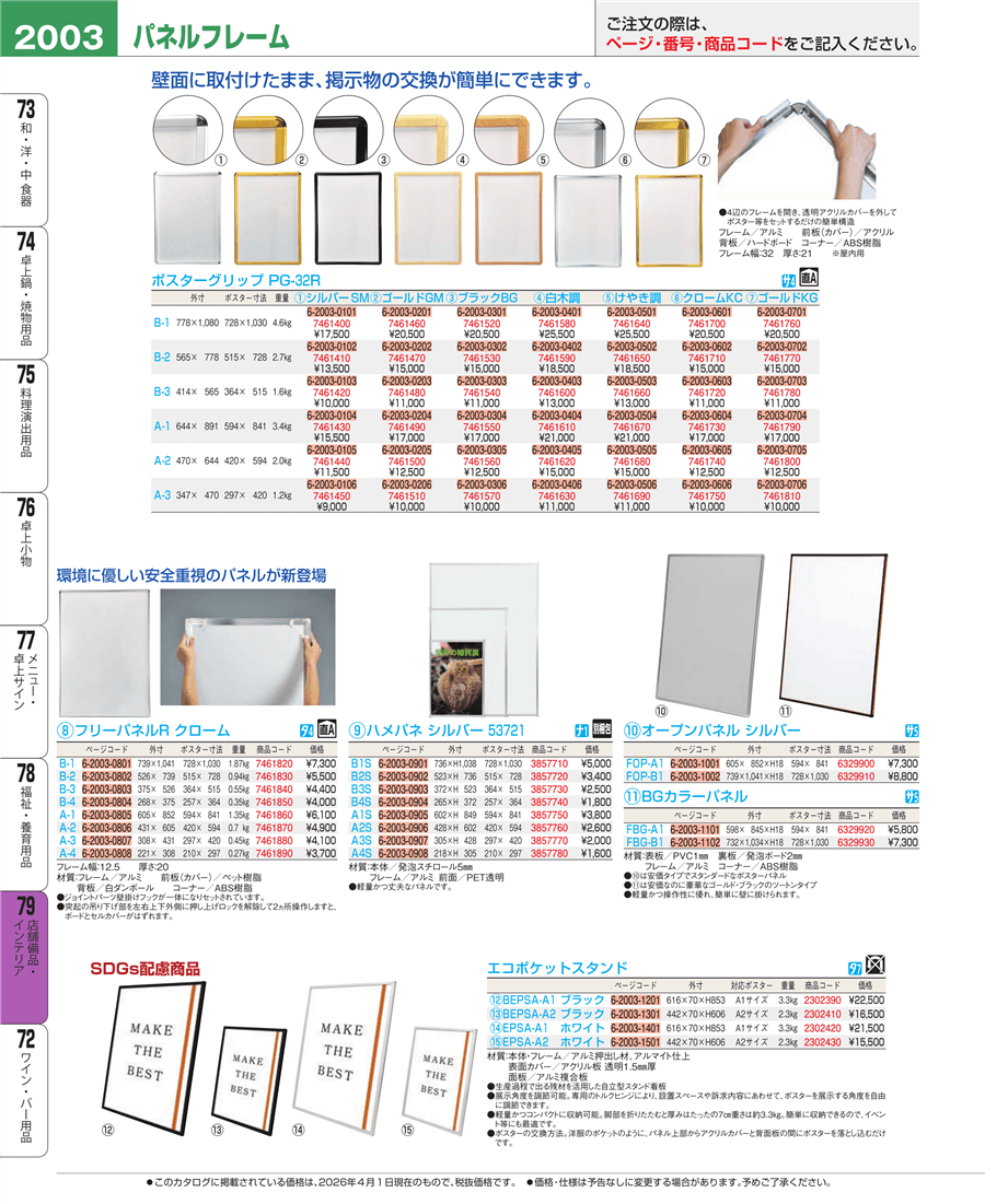| e26-7461460 | ポスターグリップ PG-32R B-1 ゴールドフレームGM | 上代 20,500円(税抜) 見積 | ||