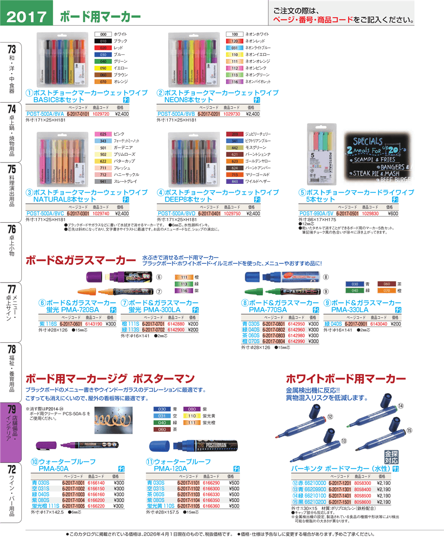 e26-1029720ポストチョークマーカーウェットワイプ POST-500A/8VA BASIC8本セット上代 2,400円(税抜)