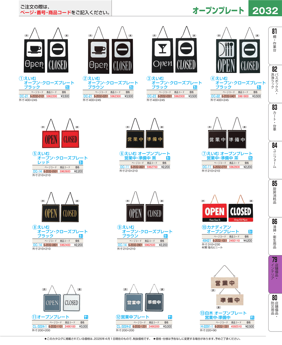 e26-5962600えいむ オープン・クローズプレート OC-14 レッド上代 2,200円(税抜)