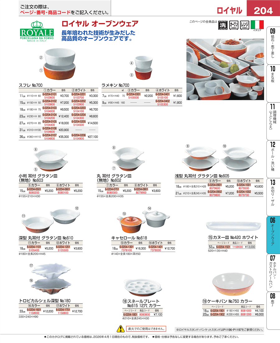 | e26-8080000 | ロイヤル 丸耳付グラタン皿 無地 №602 15㎝ カラー | 上代 5,200円(税抜) 見積 | ||