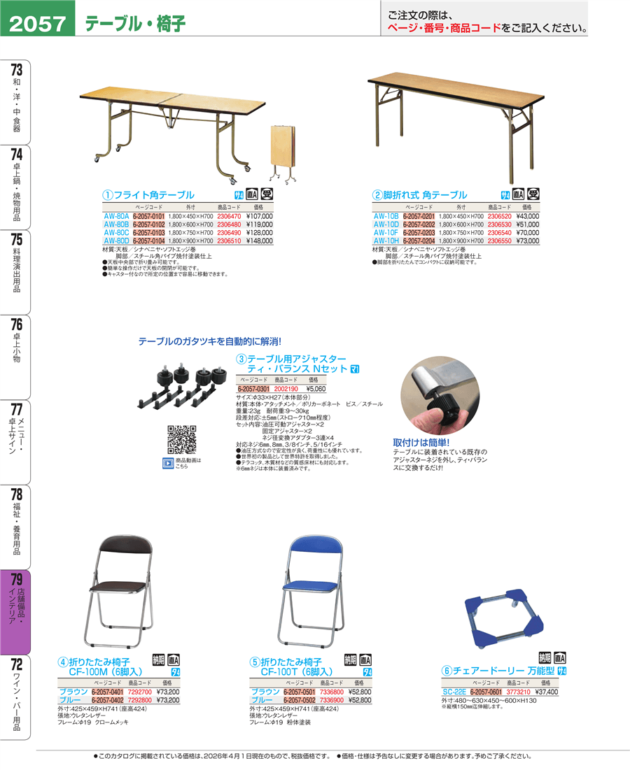 | e26-2306530 | 脚折れ式 角テーブル 1800×600 AW-10D | 上代 51,000円(税抜) 見積 | ||