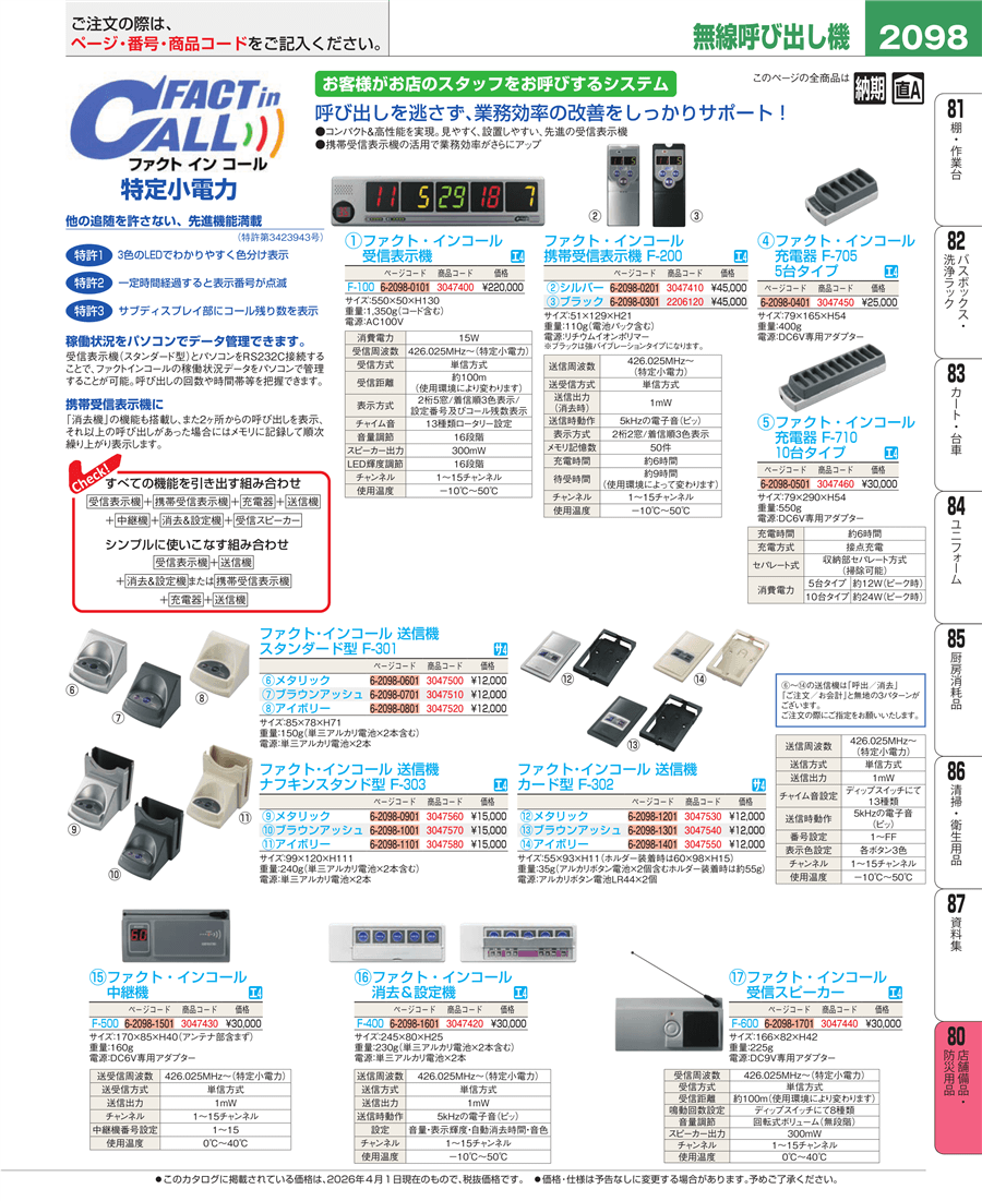 | e26-3047400 | ファクト・インコール 受信表示機 F-100 | 上代 220,000円(税抜) 見積 | ||