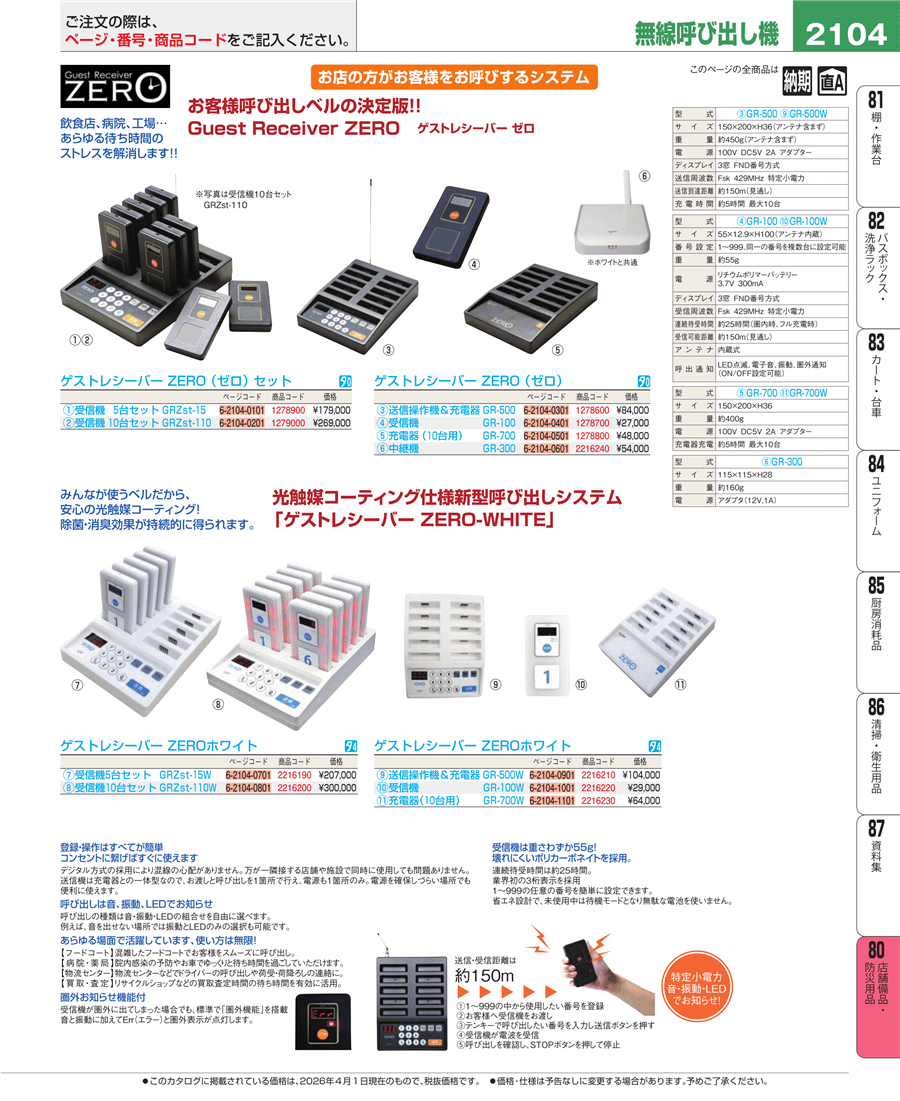 | e26-2216210 | ゲストレシーバー ZEROホワイト 送信操作機&充電器 GR-500W | 上代 104,000円(税抜) 見積 | ||