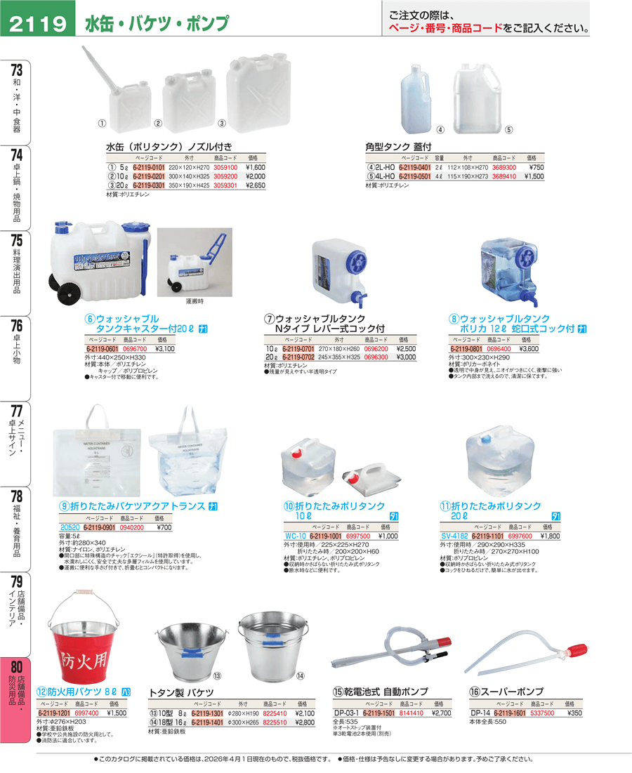 | e26-6997600-2119 | 折りたたみポリタンク 20L SV-4182 | 上代 1,800円(税抜) 見積 | ||