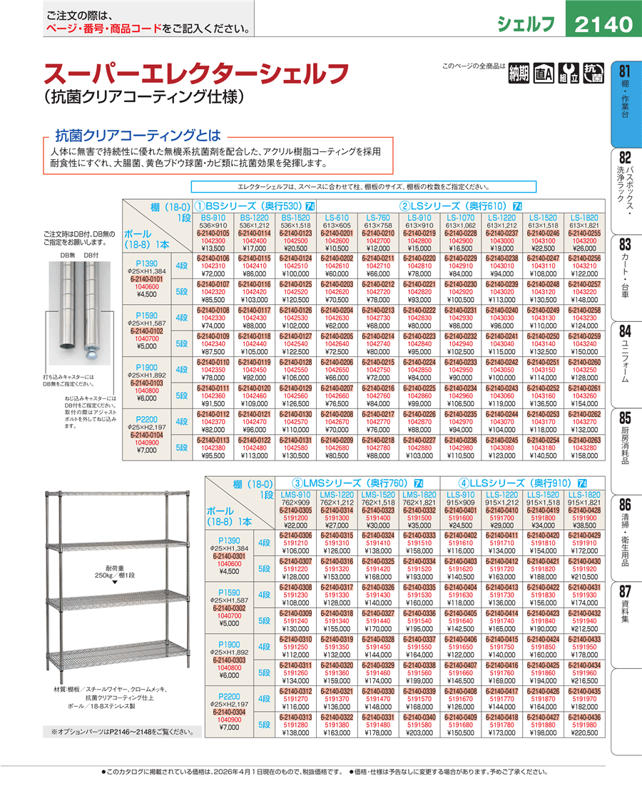 | e26-1042910 | スーパーエレクターシェルフ 4段 P1390×LS1070 | 上代 84,000円(税抜) 見積