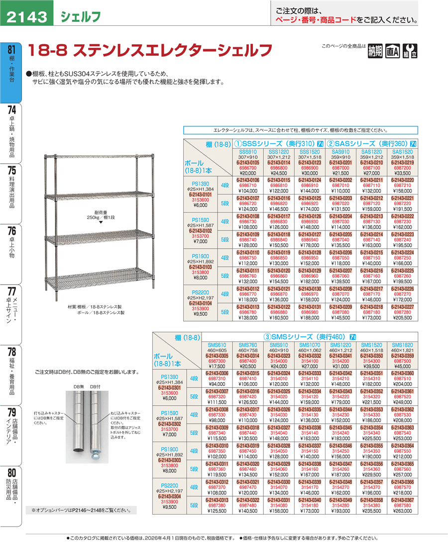 e26-698687018-8 ステンレスエレクターシェルフ 4段 PS2200×SSS1220上代 136,000円(税抜)