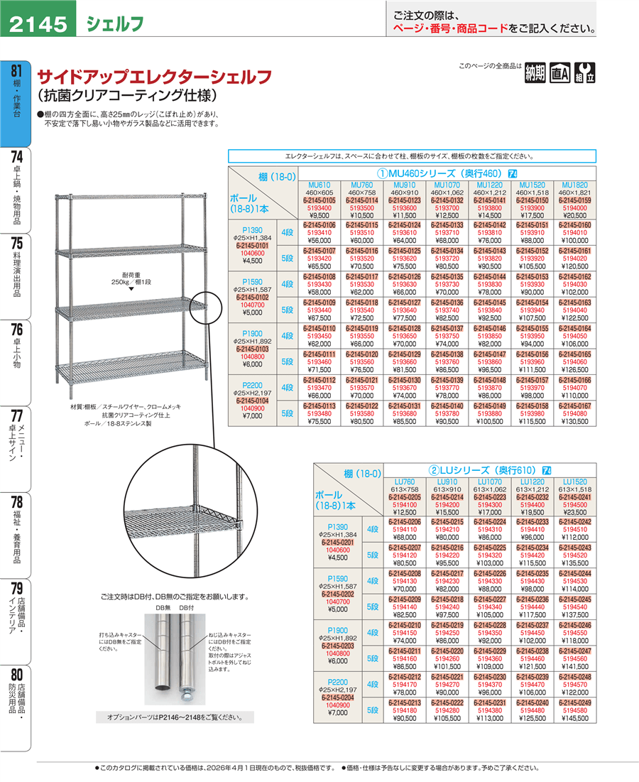 | e26-5194030 | サイドアップエレクターシェルフ4段 P1590×MU1820 | 上代 102,000円(税抜) 見積