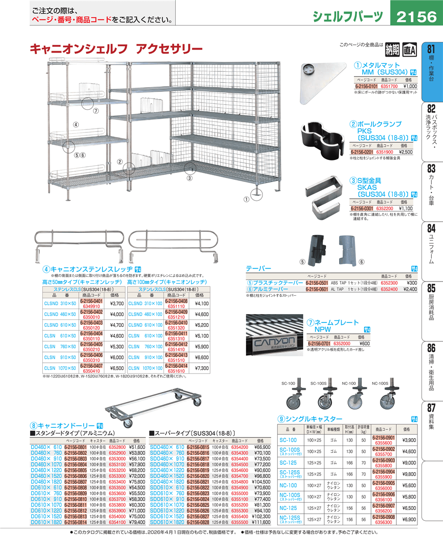 | e26-6351610 | キャニオン ステンレスレッジ(SUS304)CLSN1070×100 | 上代 7,300円(税抜) 見積