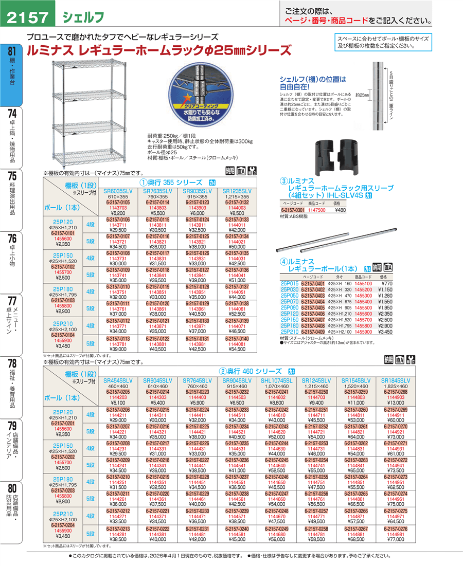 | e26-1144251 | ルミナス レギュラー SR4545×25P180 4段 | 上代 31,500円(税抜) 見積