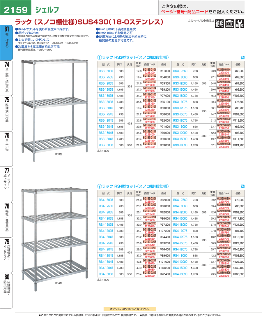 | e26-2228830 | ラック RS4型(スノコ棚4段仕様)RS4-18090 | 上代 160,000円(税抜) 見積 | ||