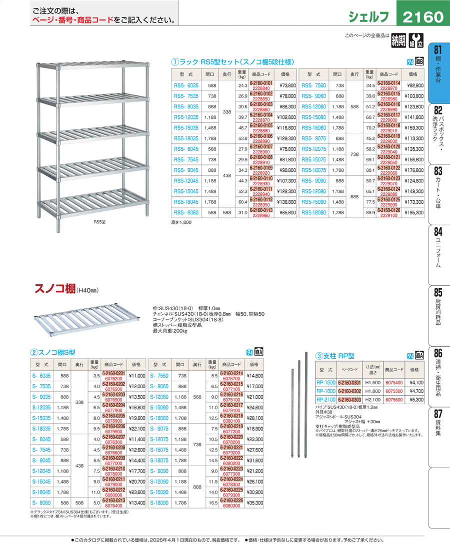 | e26-2229010 | ラック RS5型(スノコ棚5段仕様)RS5-18060 | 上代 159,300円(税抜) 見積 | ||
