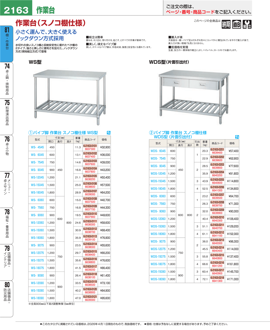 | e26-6638600 | パイプ脚 作業台 スノコ棚仕様 WS-15045 | 上代 57,500円(税抜) 見積 | ||