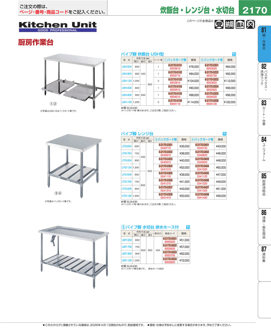 | e26-5541120 | パイプ脚 レンジ台 UTG-606 バックガード有 | 上代 47,000円(税抜) 見積 | ||