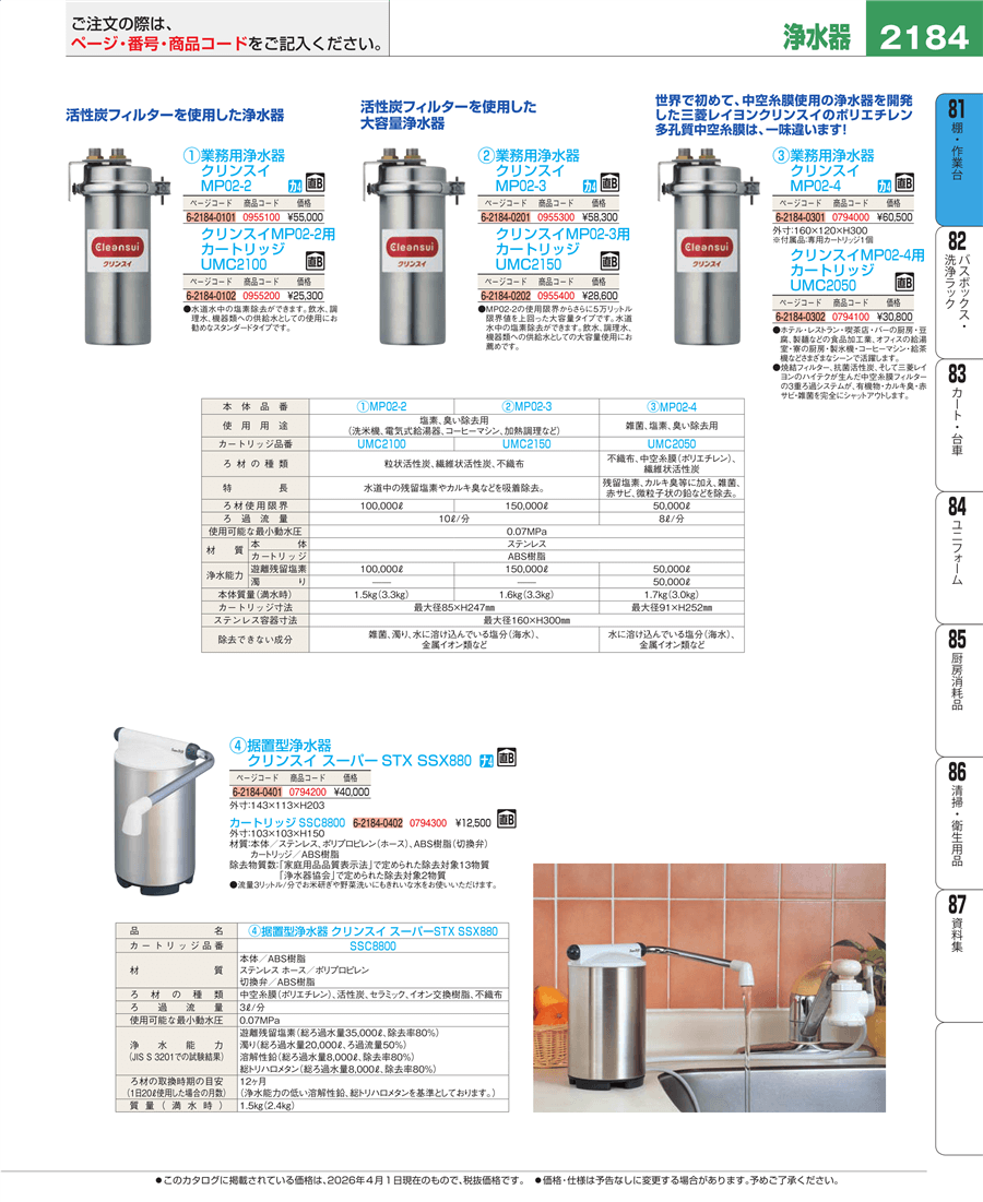 | e26-0794000 | 業務用浄水器 クリンスイ MP02-4 | 上代 60,500円(税抜) 見積 | ||