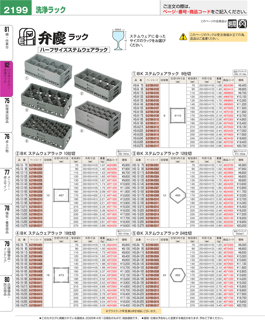 e26-4624380BK ハーフ ステムウェアラック18仕切 HS-18-275上代 19,400円(税抜)