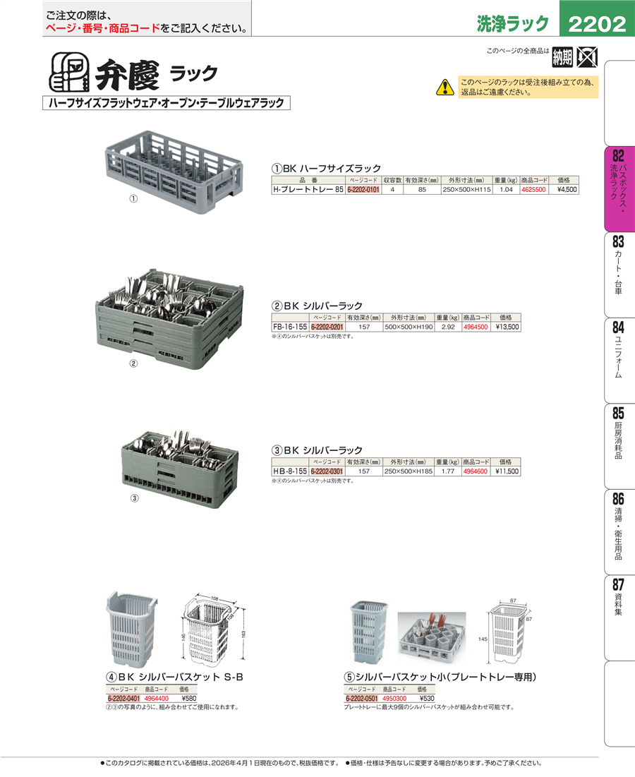 | e26-4964600 | BK ハーフサイズ シルバーラック 本体 HB-8-155 | 上代 11,500円(税抜) 見積 | ||