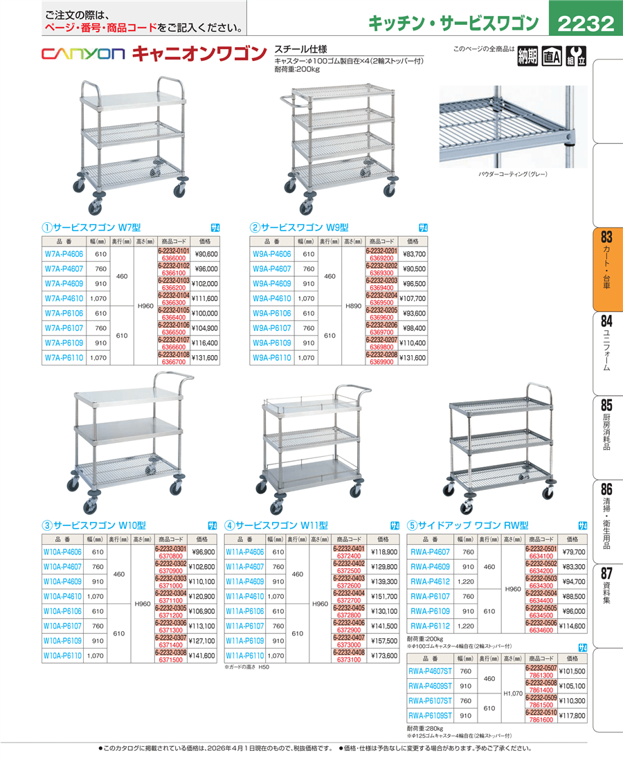 | e26-7861300 | サイドアップワゴン RW型 スチール仕様 RWA-P4607ST | 上代 101,500円(税抜) 見積 | ||