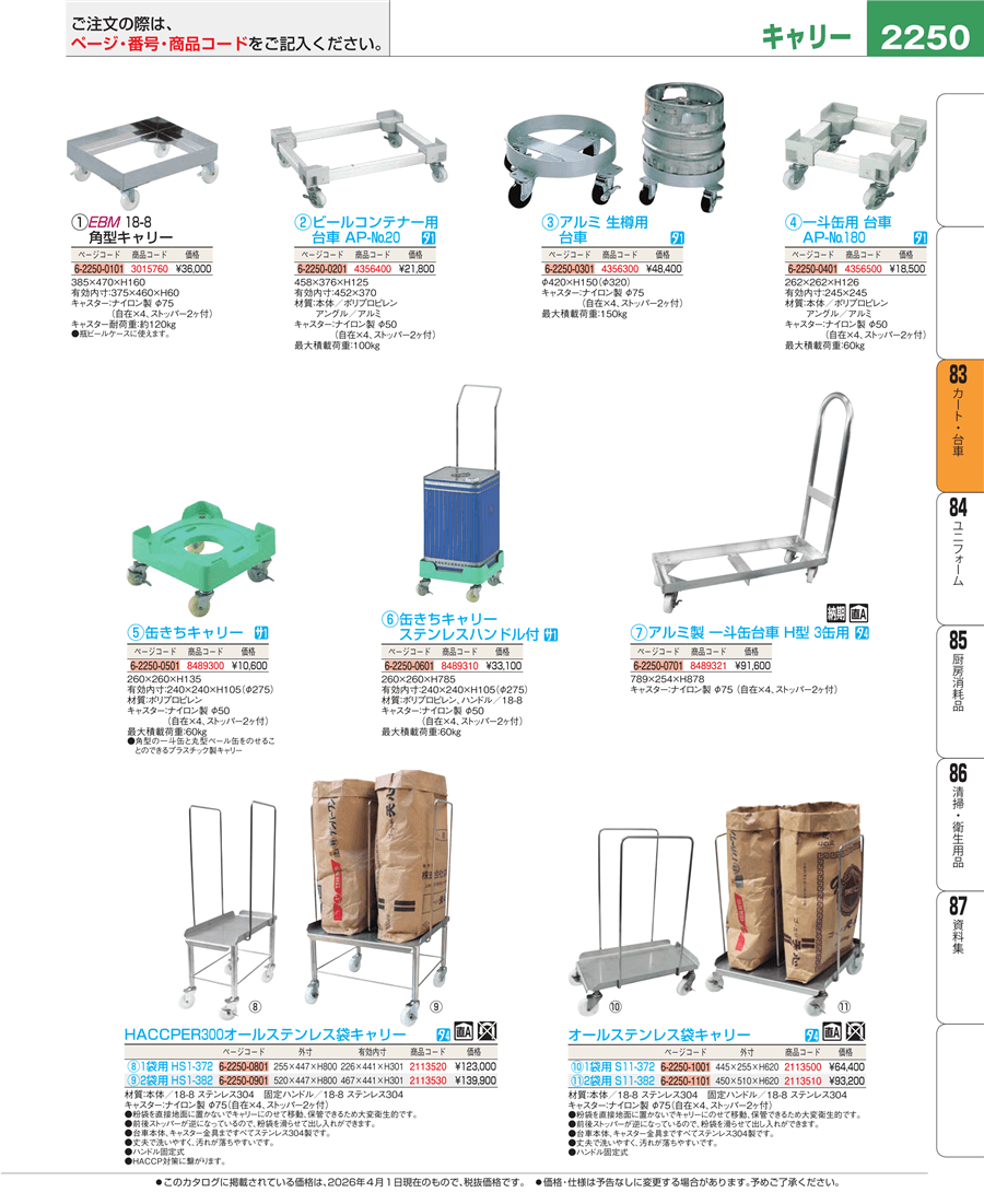 e26-2113500オールステンレス袋キャリー 1袋用 S11-372上代 64,400円(税抜)