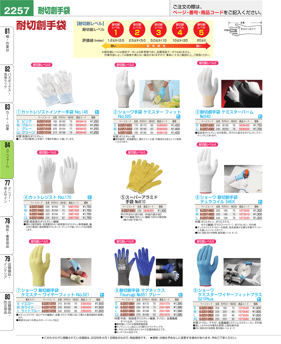 e26-5836400耐切創手袋 ケミスターパーム №540 M上代 1,700円(税抜)
