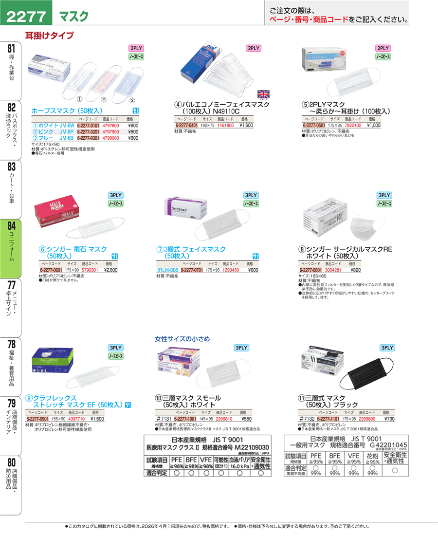 | e26-2209800 | 三層式 マスク (50枚入) ブラック #7132 | 上代 730円(税抜) 見積 | ||