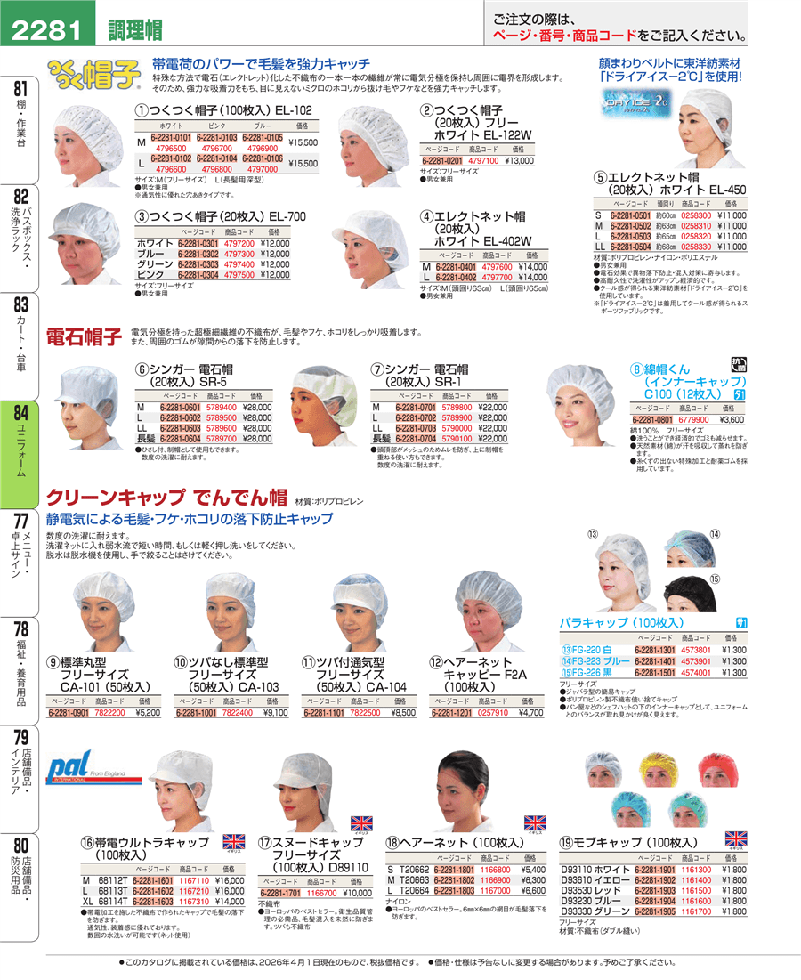 | e26-0258330 | エレクトネット帽(20枚入)EL-450 LL ホワイト | 上代 11,000円(税抜) 見積 | ||