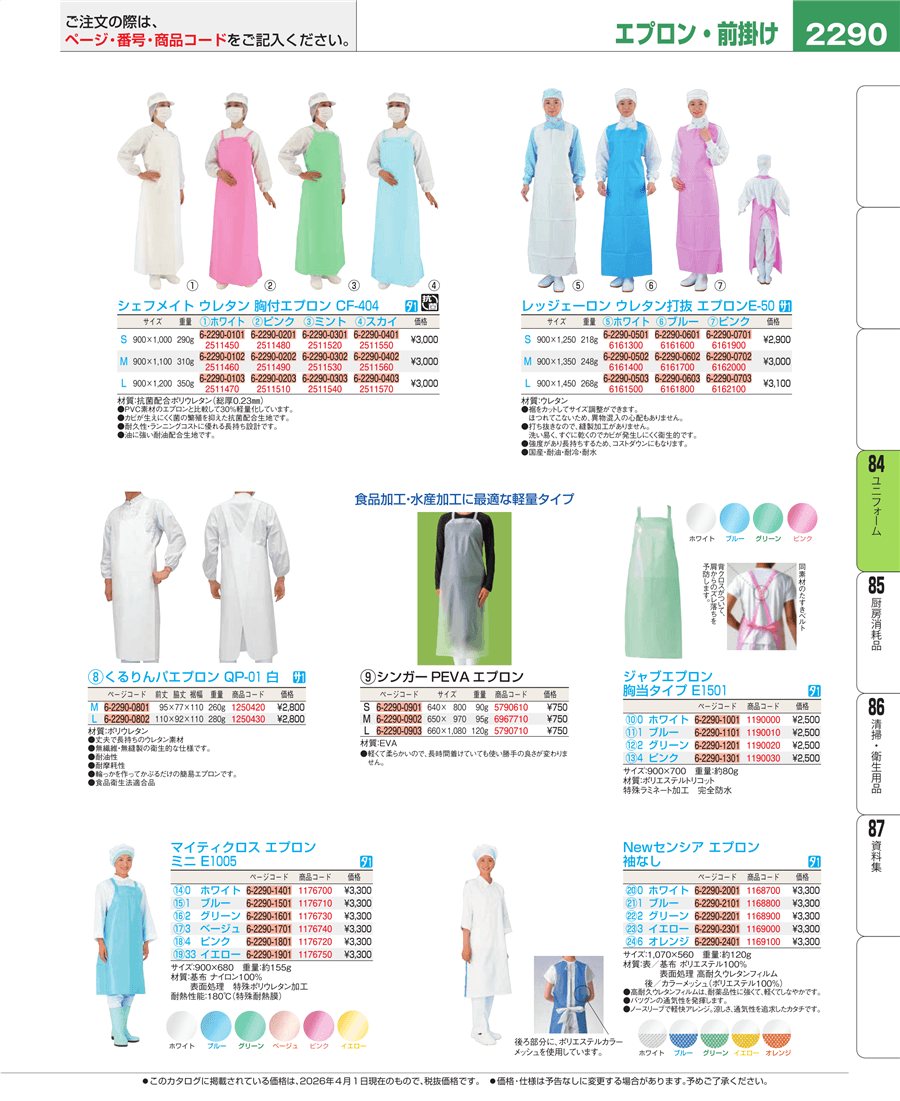 | e26-2511520 | シェフメイト ウレタン 胸付エプロン CF-404 ミント S | 上代 3,000円(税抜) 見積