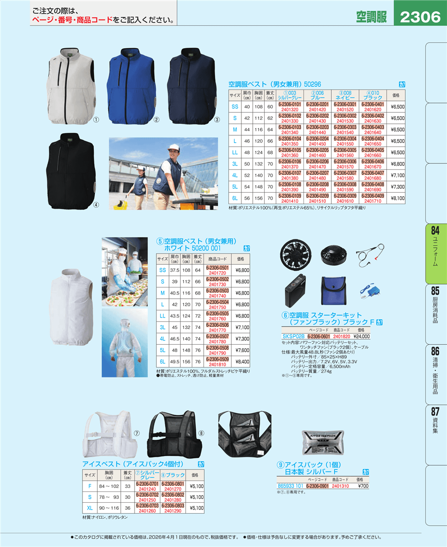 | e26-2401810 | 空調服ベスト(男女兼用)ホワイト 6L | 上代 8,400円(税抜) 見積