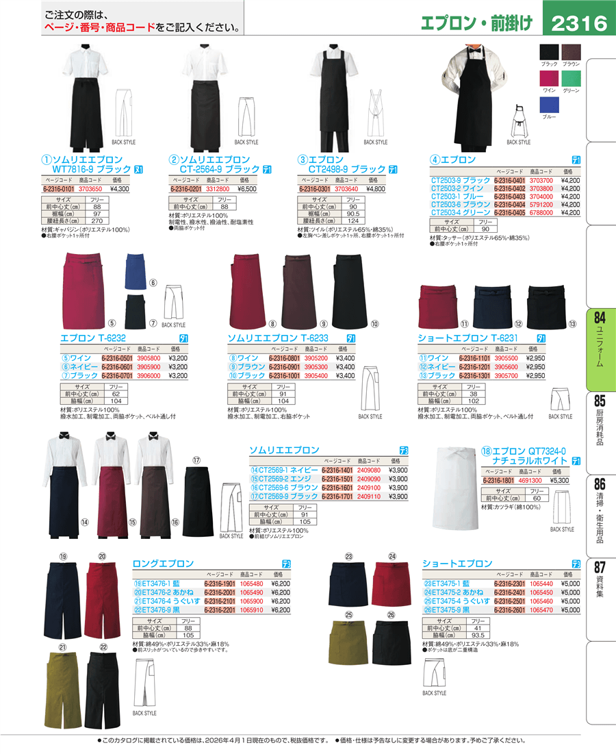 e26-3906000エプロン T-6232 ブラック上代 3,200円(税抜)