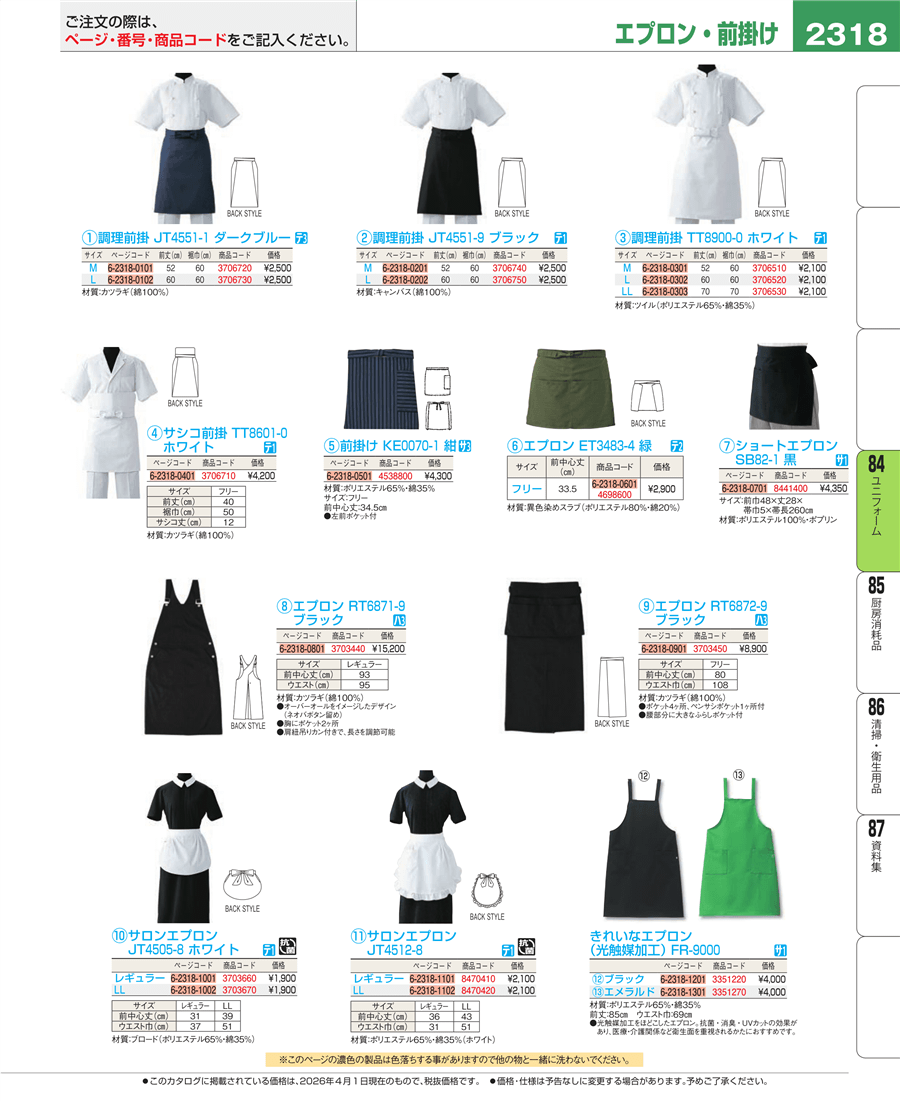 | e26-3706740 | 調理前掛 JT4551-9 ブラック M | 上代 2,500円(税抜) 見積 | ||