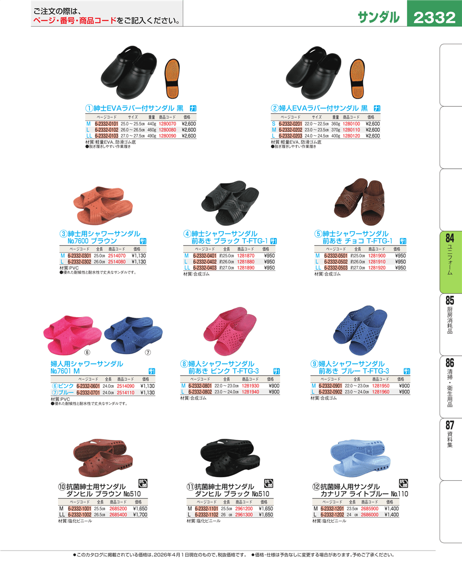 | e26-1280110 | 婦人EVAラバー付サンダル TPL-24 黒 M | 上代 2,600円(税抜) 見積 | ||