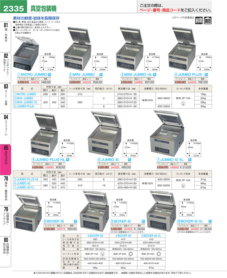 | e26-5443100 | 卓上型 真空包装機 MINI JUMBO | 上代 546,000円(税抜) 見積 | ||
