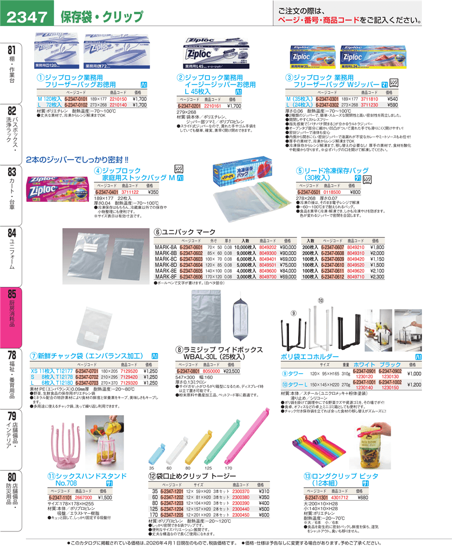 | e26-2300390 | 袋口止めクリップ トージー80(3本セット) | 上代 400円(税抜) 見積 | ||