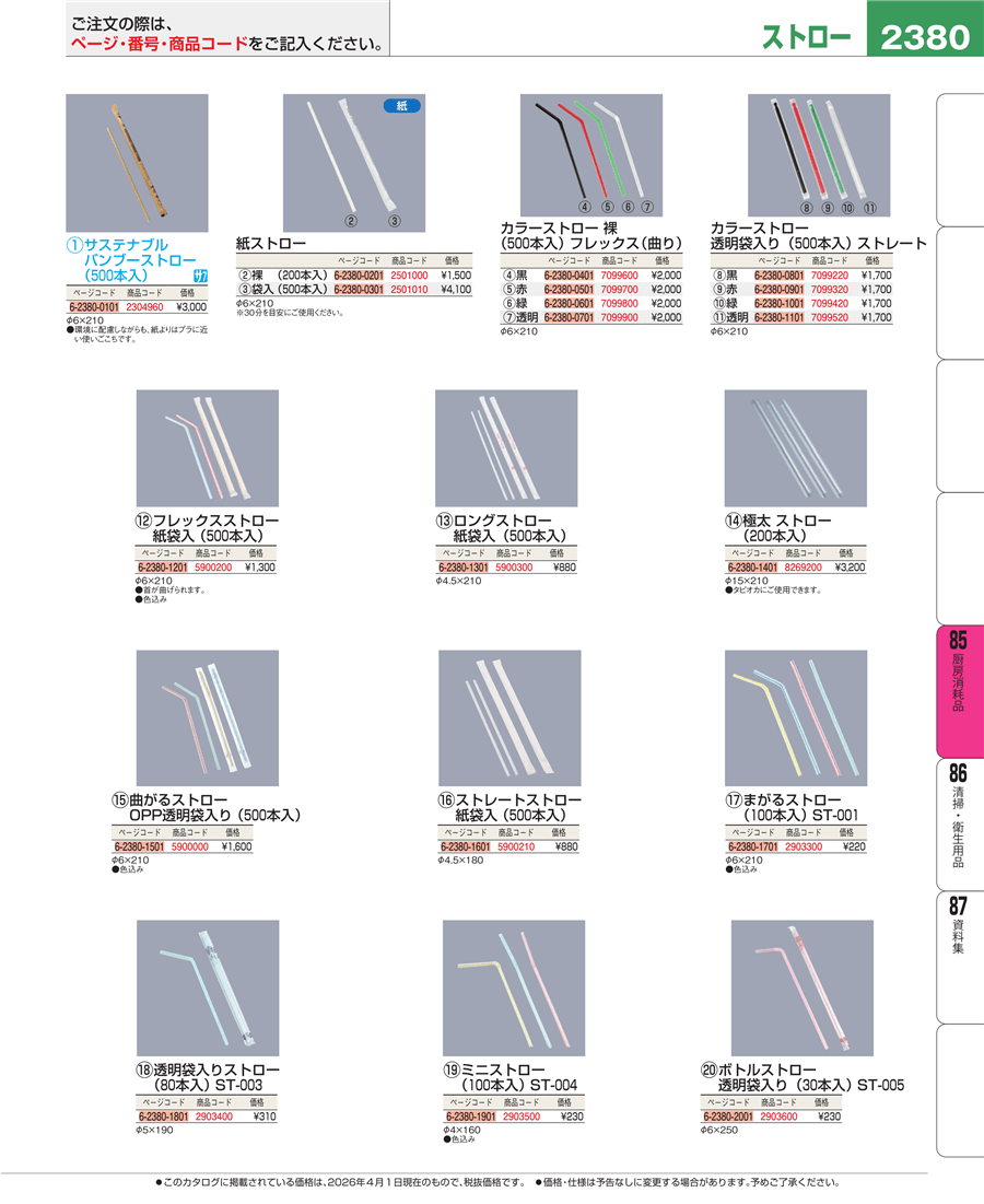 | e26-2903400 | 透明袋入りストロー(80本入)ST-003 | 上代 310円(税抜) 見積 | ||