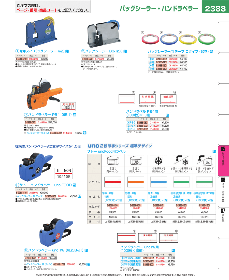 | e26-2688600 | ハンドラベラー uno FOOD | 上代 30,000円(税抜) 見積 | ||