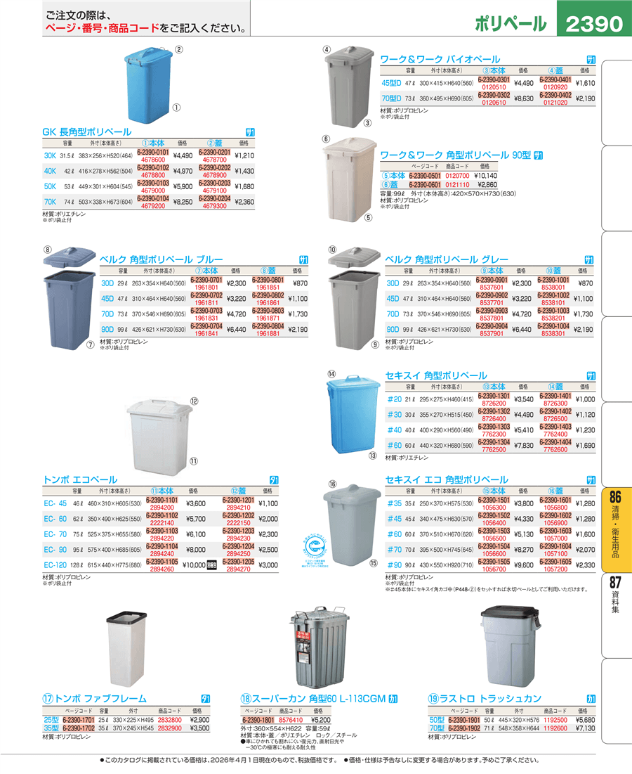 | e26-0120700 | ワーク&ワーク 角型ポリペール 90型 本体 | 上代 10,140円(税抜) 見積 | ||