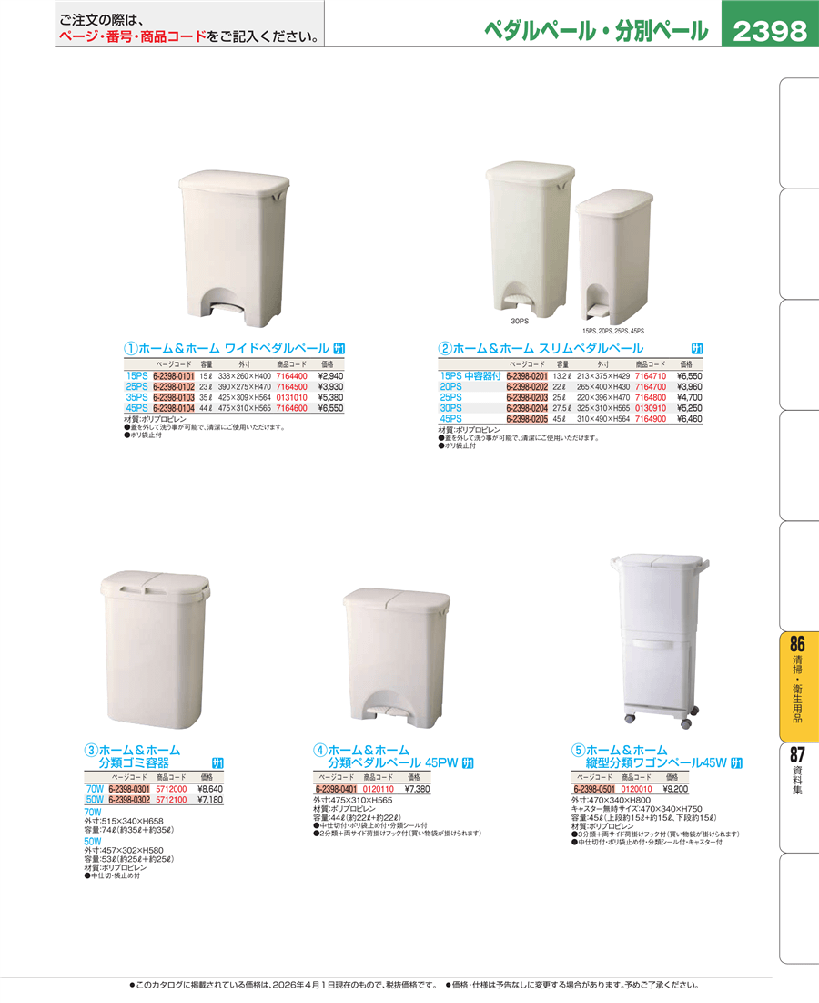 | e26-0120110 | ホーム&ホーム 分類ペダルペール 45PW | 上代 7,380円(税抜) 見積 | ||