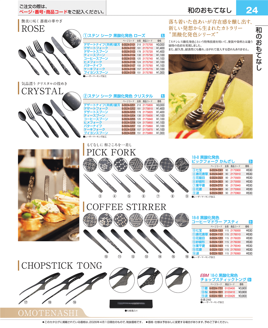 | e26-2175750 | ステン シーク 黒酸化発色 ローズ ヒメフォーク | 上代 1,100円(税抜) 見積