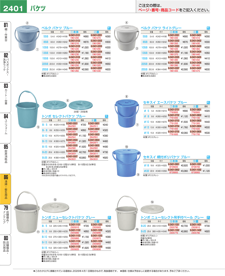 e26-7761000セキスイ エースバケツ ブルー #8 本体 8L PE上代 1,120円(税抜)