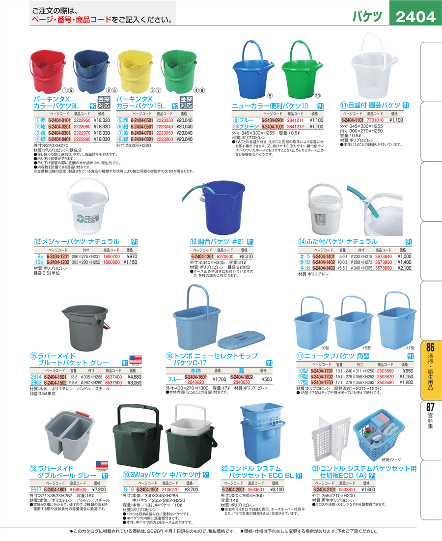 | e26-0503801 | コンドル システムバケツセットECO BL | 上代 3,100円(税抜) 見積 | ||