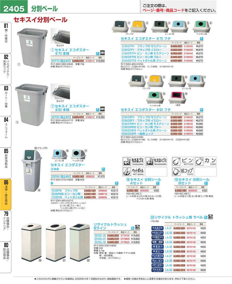 e26-8565900セキスイ 分別シール Aセット(4枚入)上代 320円(税抜)