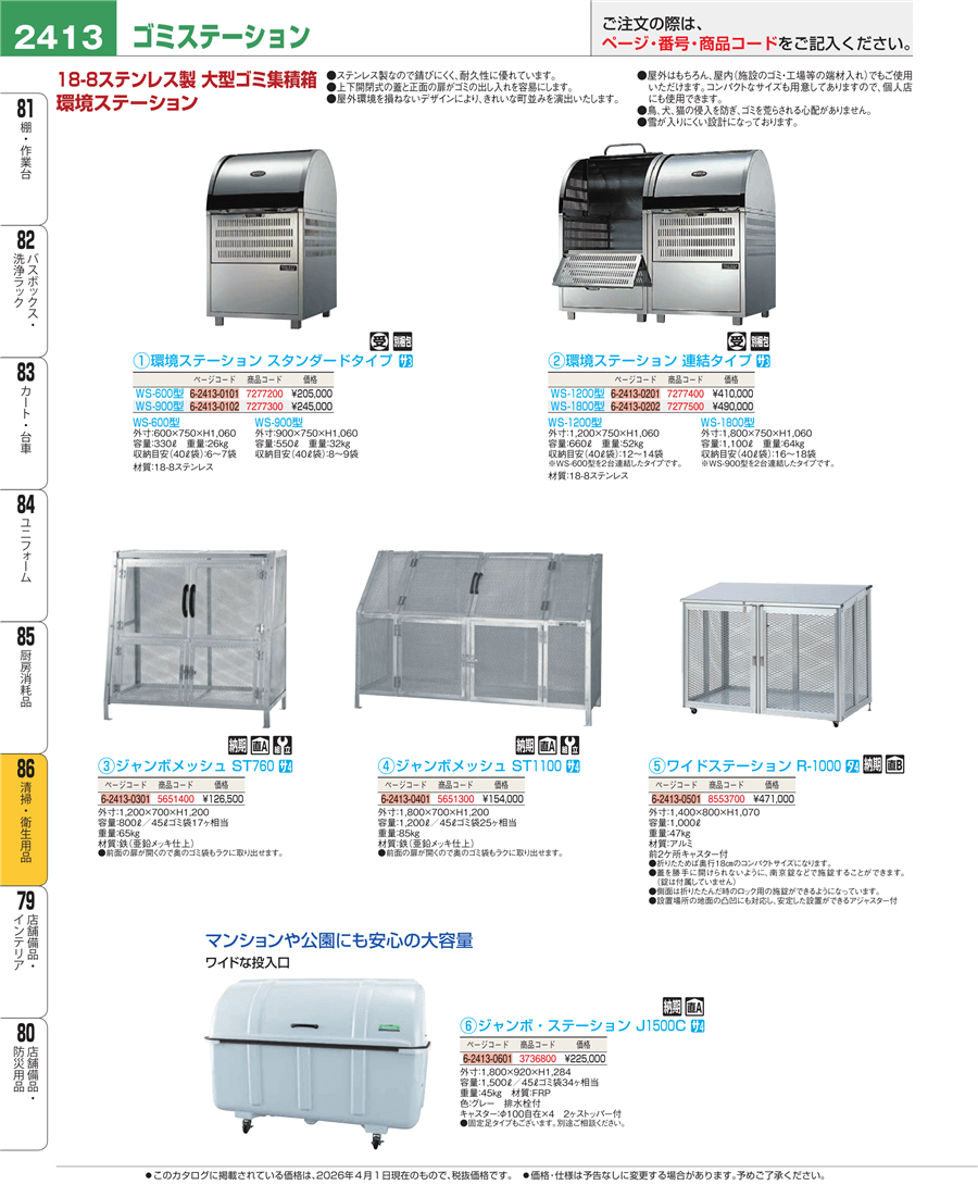 | e26-7277500 | 環境ステーション 連結タイプ WS-1800型 | 上代 490,000円(税抜) 見積 | ||