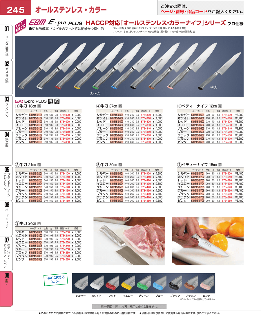 | e26-8734200-245 | EBM E-pro PLUS 牛刀 24㎝ シルバー | 上代 12,000円(税抜) 見積 | ||