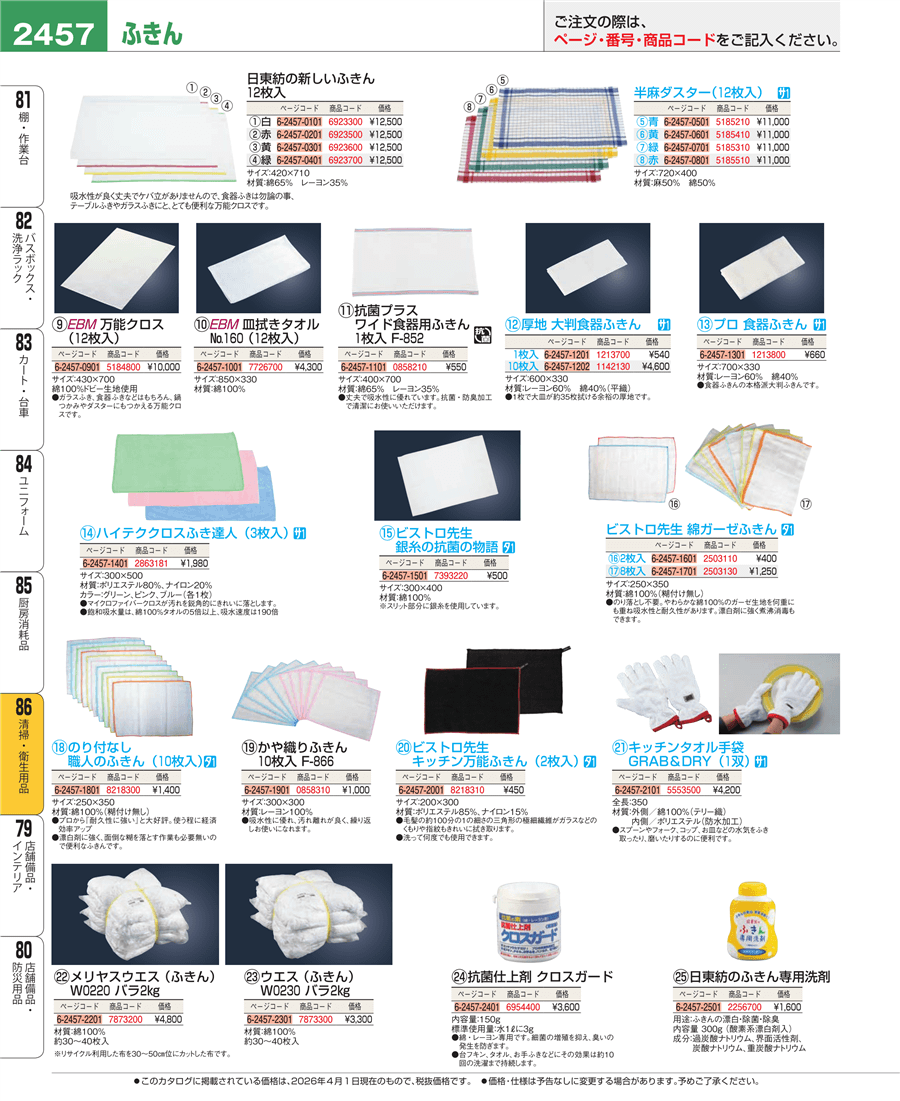 | e26-7726700 | EBM 皿拭きタオル №160(12枚入)850×330 | 上代 4,300円(税抜) 見積 | ||