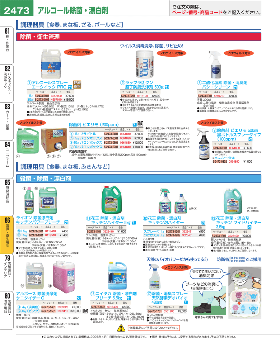 | e26-2909320-2473 | アルボース 除菌洗浄剤 サニタイザーC 4㎏(淡黄色) | 上代 7,300円(税抜) 見積 | ||