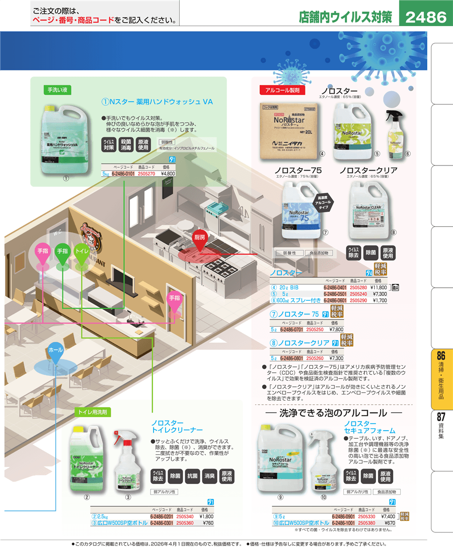 | e26-2505260 | アルコール製剤 ノロスタークリア 5L 277730 | 上代 7,300円(税抜) 見積 | ||
